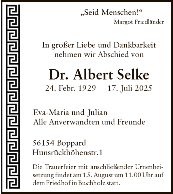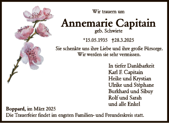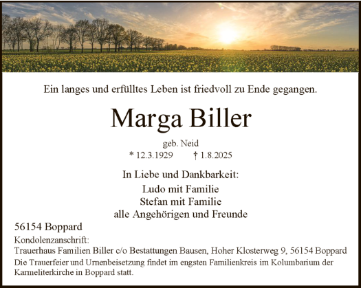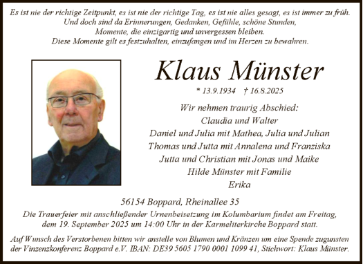 Boppard Trauer Traueranzeige Beisetzung