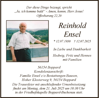 Boppard Trauer Traueranzeige Beisetzung